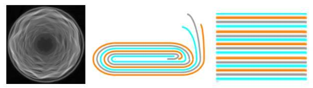 左柱体倒丝机 中-方通倒丝机 右-方通叠层